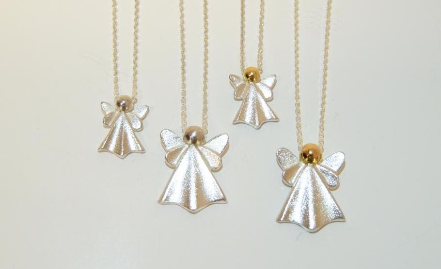 Välj att få din ängel helt i silver, silver med guldhuvud, eller helt i guld.