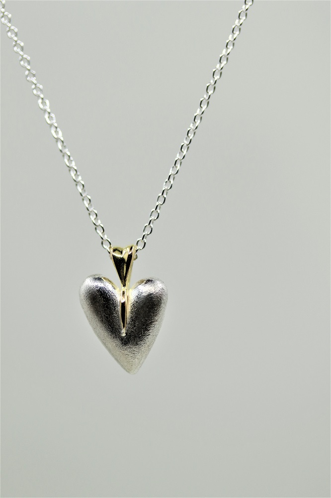 Vårt hjärta Karin i mattslaget silver med 18K guldögla.