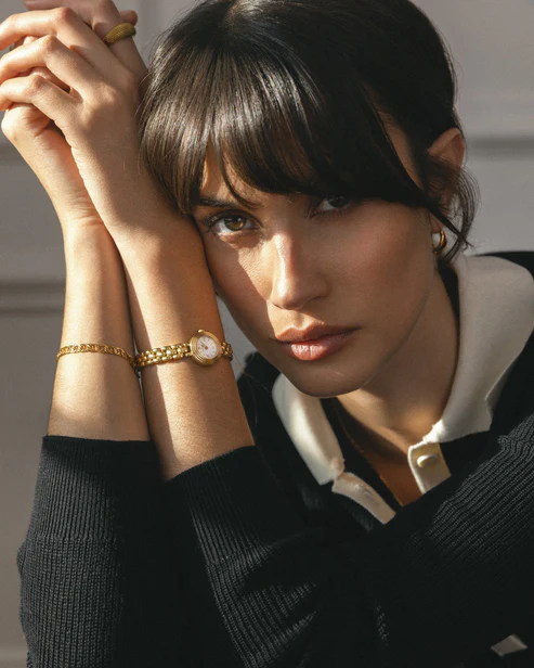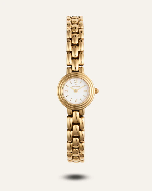 Vi presenterar vår nätta vintage klocka. Ett tidlöst smycke som inte bara är en vacker detalj på handleden. Med sitt rep och stöttåliga mineralglas och guld pläterat länkarmband är den lika hållbar som snygg. En tidlös klocka för alla tillfällen.