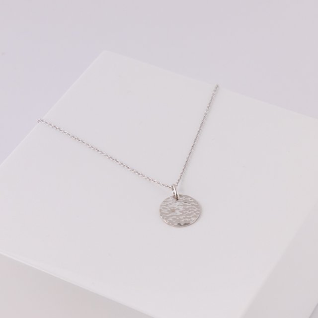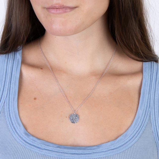 Ett halsband i rhodierat silver från serien Two-Sided52, med ett hänge som har olika yta på fram och baksida.